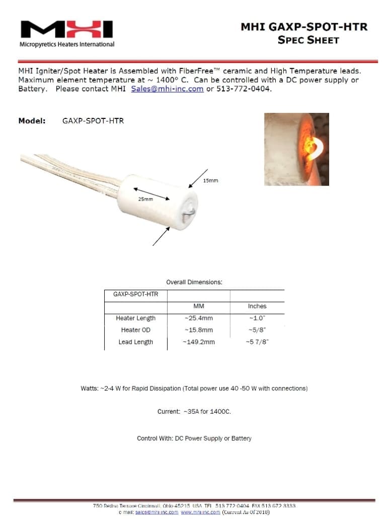 • Microheater several models high temperatureMHI Inc. USA